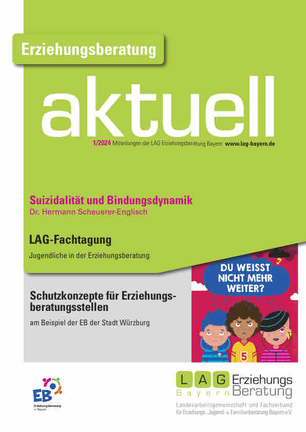 Erziehungsberatung aktuell 2024-01 Suizidalität und Bindungsdynamik; Schutzkonzept Kindsmüller, Martina (Walhallanet) ISBN-978-3-947936-18-2 Preis: 7,70 € (DE) weitere Informationen... |